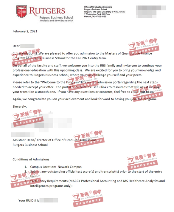 录取结果:Rutgers University,Master of Quantitative Finance罗格斯大学计量金融硕士录取