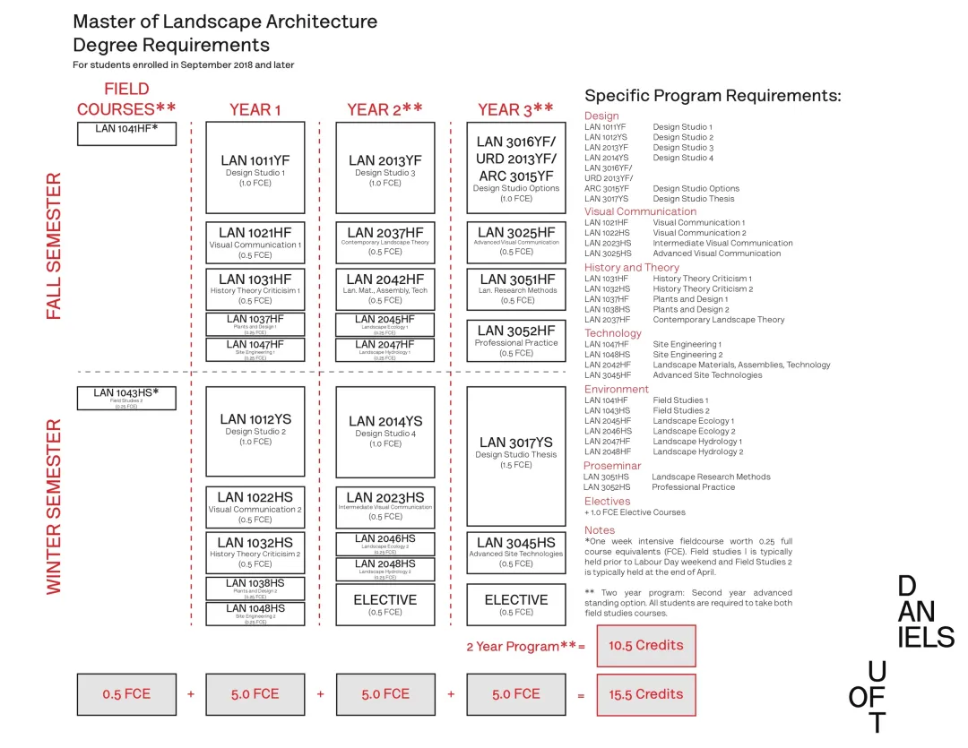 多大的MLA Program 从1934设办以来已经有80多年的历史了。2018, ASLA/CSLA协会延续了五年一次的项目认证。而近段时间的教学风格和体系和Daniels的老师密不可分。Core Faculty的成员基本上都出身于哈佛GSD,Liat擅长cultural landscape的概念与理论推演,她主要负责indigenous culture相关的一些设计项目;Fadi主要负责Climate change相关研究,他的图面设计与研究非常出色;Georges负责的历史研究主张Precedent Study和交叉学科的方法论。在教学中,你会感受到老师的严谨以及对于课程教学的纯粹热爱,没有一门是水课。虽然教学的内容都非常高深难懂,但整个学期的学习过程都被很好地划分为阶段性成果一步步地提高与收获。