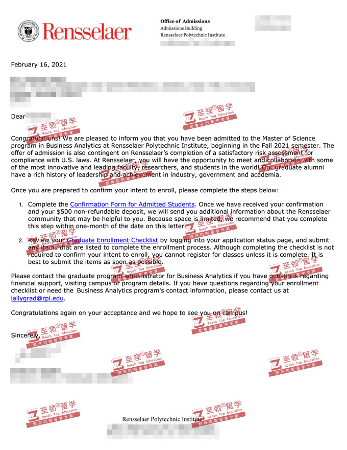 录取结果:RPI,MS in Business Analystics伦斯勒理工大学商业分析硕士录取