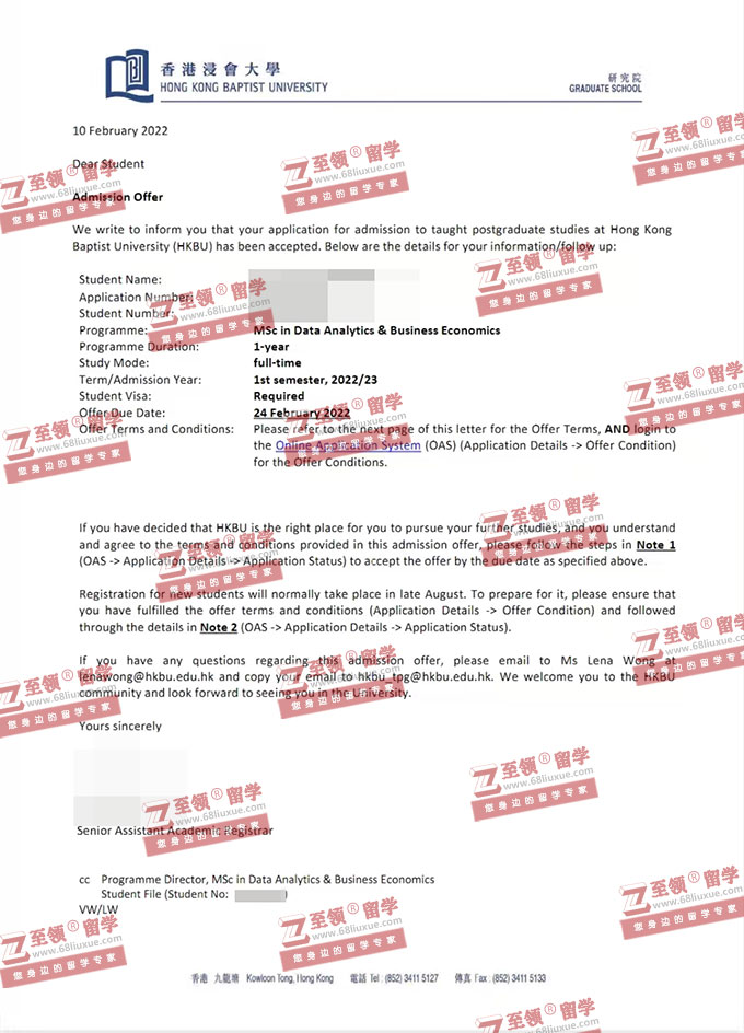 录取结果:Hong Kong Baptist University,Master of Science in Data Analytics and Business Economics 香港浸会大学数据分析与商业经济学硕士录取