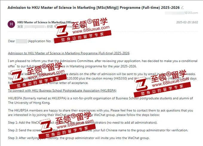 香港大学商学院以录取标准严苛著称,尤其偏好有工作经验的申请人,录取者平均工作经验为2-3年。MSc in Marketing是亚洲顶尖的商科项目之一,竞争异常激烈,每年申请数量大约2000人左右,录取不足100人,录取率大约5%。X同学的全职工作经验不足2年,这在申请中是一个明显的短板。为此,顾问团队重点突出了她在设计项目中的实践成果,强调了她快速学习、适应多元环境的能力,并通过推荐信进一步强化了她的职业潜力。