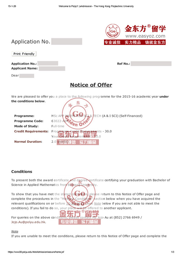 录取结果:香港理工大学,Master of Science in Applied Mathematics for Science and Technology (Actuarial and Investment Science)
