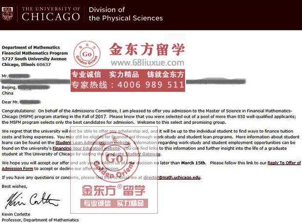 录取结果:University of Chicago芝加哥大学,Master of Science in Financial Mathematics(MSFM)金融数学硕士
