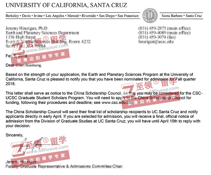 录取结果:University of California, Santa Cruz加州大学圣克鲁兹分校,PhD in Earth and Planetary Sciences地球与行星科学博士,全额奖学金