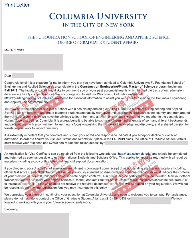 录取结果:Columbia University 哥伦比亚大学,Master of Science in the Construction Engineering Management 建筑工程管理硕士