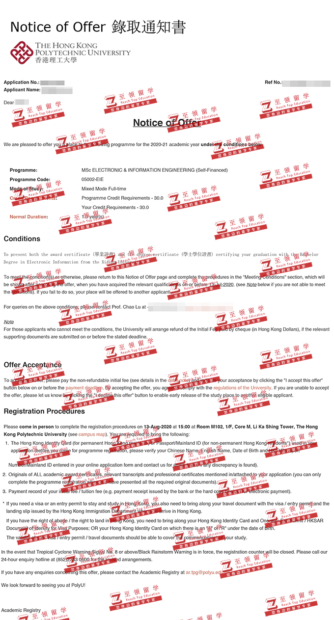 录取结果:PolyU,MSc ELECTRONIC & INFORMATION ENGINEERING香港理工大学电子工程硕士
