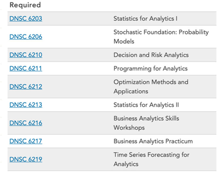 • Applications : Elective courses in Analytics applied to a specific functional area or industry.
