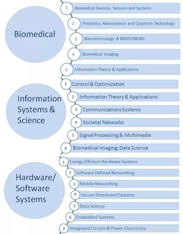 斯坦福的EE设置在Engineering工学院下,它的研究方向非常丰富,分为两大类: