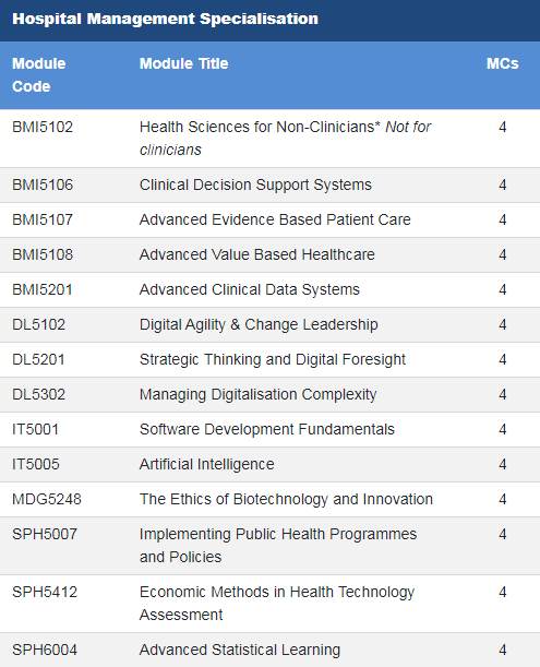 本项目由新国大杨潞龄医学院(NUSMed)生物医学信息学系开设,并与新国大计算机学院、苏瑞福公共卫生学院和系统科学院合作。