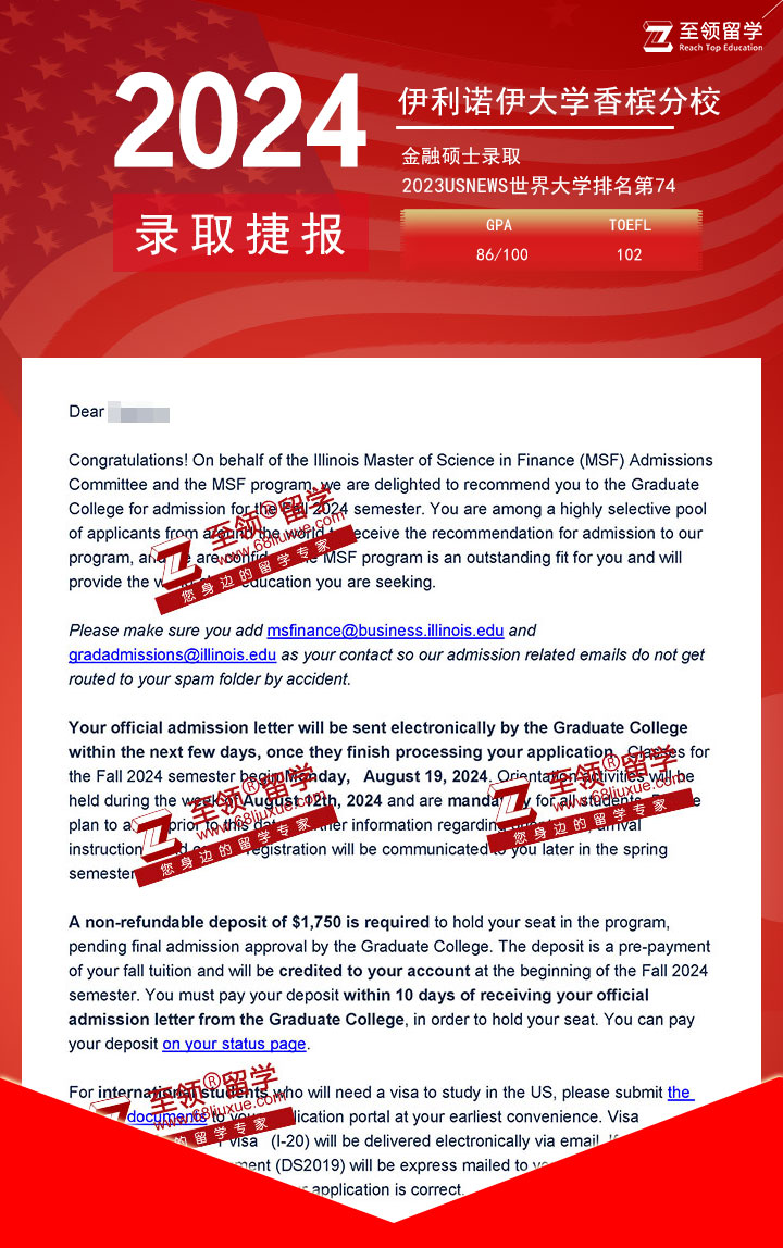 录取结果:University of Illinois Urbana-Champaign,Master of Science in Finance 伊利诺伊大学香槟分校金融硕士录取