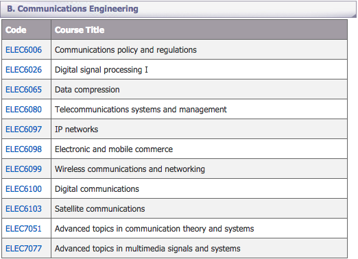 MSc(Eng) in EEE有三个分支:General Stream(都学), Communications Engineering(通信工程), Power Engineering(电力/动力工程)。