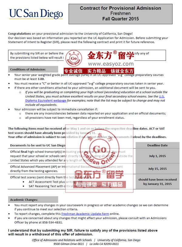 录取结果:加州大学圣地亚哥分校本科(2015年美国大学本科综合排名37)