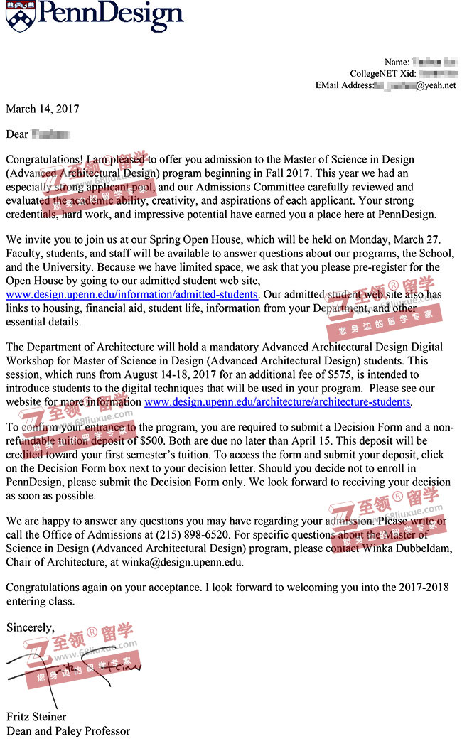 录取结果:University of Pennsylvania(宾夕法尼亚大学), Master of Science in Design(Advanced Architectural Design)建筑学硕士