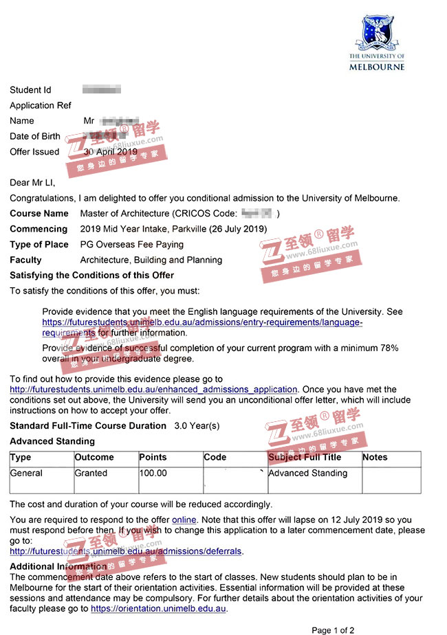 录取结果:University of Melbourne,Master of Architecture墨尔本大学建筑学硕士